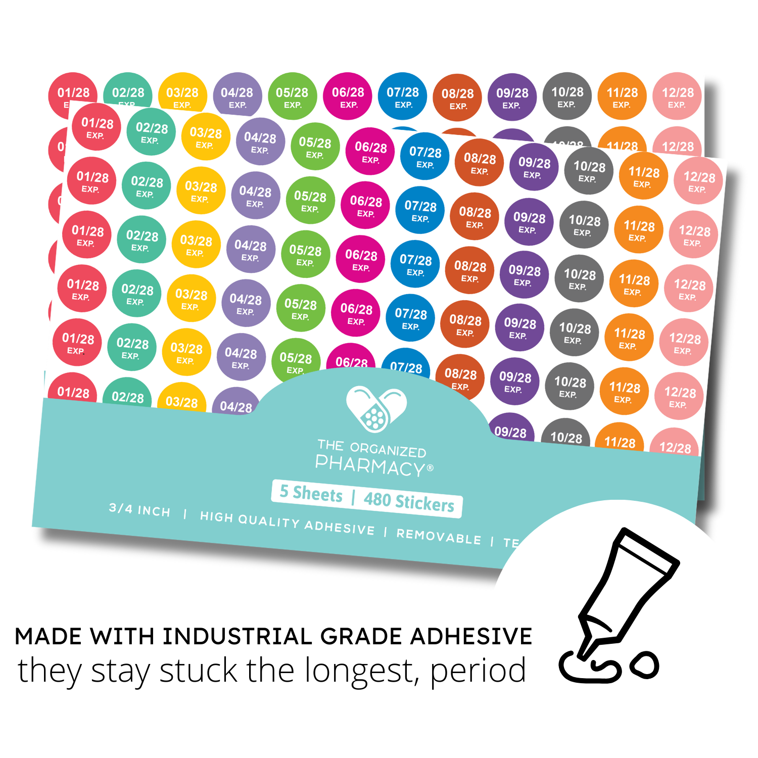 - STAY STUCK THE LONGEST, PERIOD - Industrial Grade - Won’t Peel, Tear or Fade: While most stickers fall off, tear off, or fade into perplexing colors that make you toss good product, we combined industrial grade adhesion with the richest, UV defiant inks - so these date stickers stay stuck & easily identified for years to come.