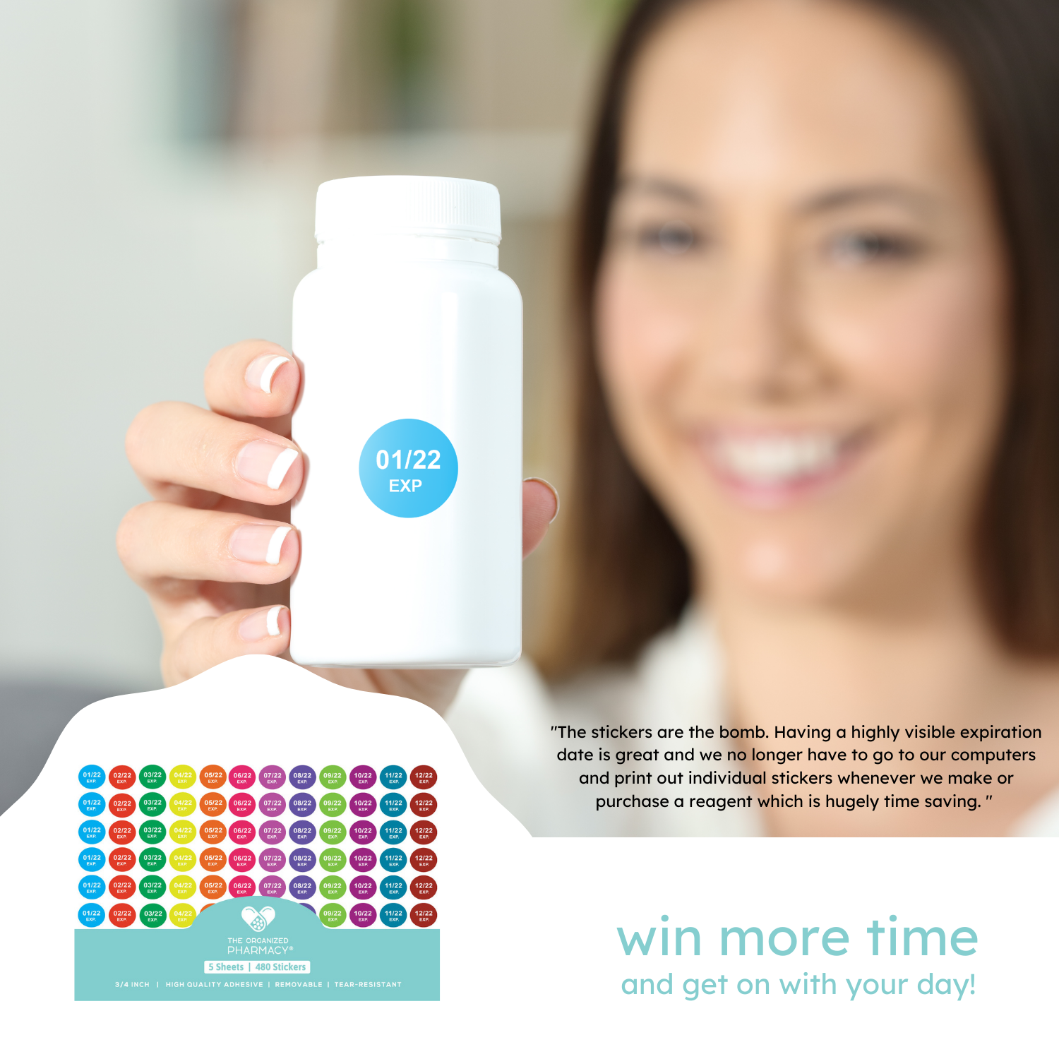 - 5 YEARS SECURITY & EASE - Color Coded By Month, Zero Repeats: Make time consuming inventory a thing of the past. The Organized Pharmacy works beautifully as a pharmacy/chemistry expiration date management system, with 5 full years of expiration labels, and zero repeats.